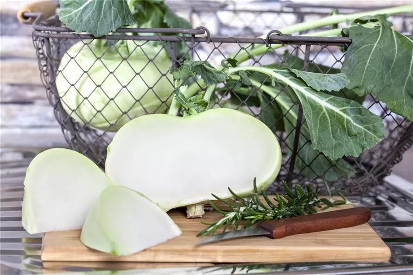 Kohlrabi überzeugt ebenfalls durch eine kurze Entwicklungszeit (Keimdauer 6-10 Tage). Die Kohlpflanze mit verdickter Sprossknolle wird entweder ab März im Warmen vorgezogen und ab April ins Freie gepflanzt oder ab Mitte April unter Folie direkt ins Beet gesät. Sie können zwischen weißen (hellgrünen) und blauvioletten Sorten wählen, wobei die weißen meist eine kürzere Kulturzeit haben.